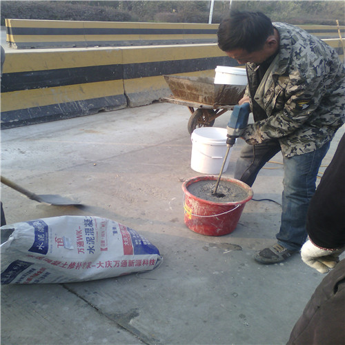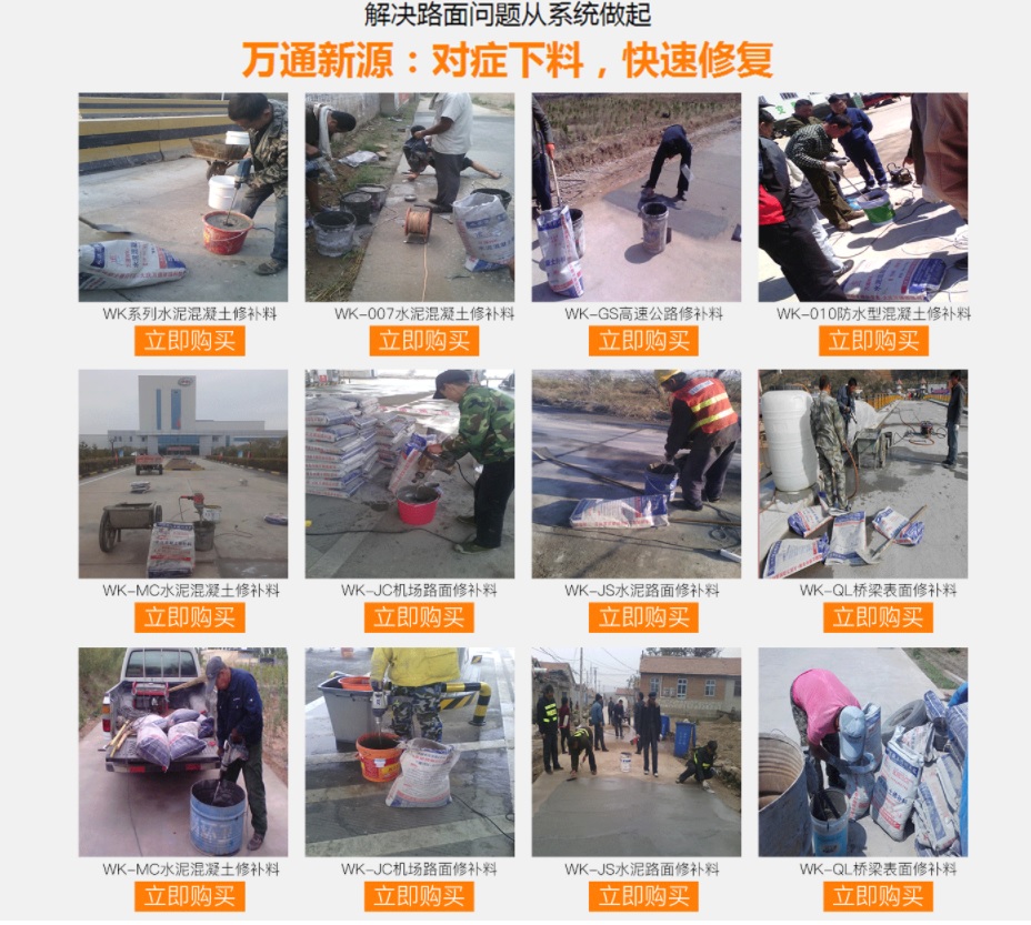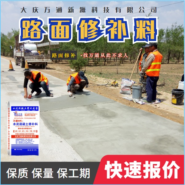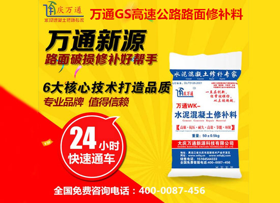 大慶萬通新源科技有限公司獨(dú)有的混凝土路面高強(qiáng)速補(bǔ)料,是水泥混凝土路面病害修復(fù)的好材料。疲勞、凍融循環(huán)、彎曲壓力、滲水和基層破壞等原因都會(huì)引起水泥路面的破損,從而帶來高昂的維護(hù)費(fèi)用。與以往的剛性修補(bǔ)方法不同,混凝土水泥路面維修速補(bǔ)膠提供了一種獨(dú)特的柔性修補(bǔ)產(chǎn)品和技術(shù),高柔性、高抗拉性,可跨伸縮縫施工和高抗壓性使得混凝土快補(bǔ)產(chǎn)品為水泥混凝土路面提供了******性的修補(bǔ)。傳統(tǒng)的剛性修補(bǔ)方案,如環(huán)氧砂漿和快干水泥產(chǎn)品,由于其自身的粘結(jié)失效,抗疲勞性低以及與原路面不同的伸縮系數(shù),修補(bǔ)面會(huì)在短時(shí)間內(nèi)失效或產(chǎn)生新的裂縫,需要反復(fù)修補(bǔ),有效期短且費(fèi)用高昂。大慶萬通新源科技有限公司的混凝土水泥路面維修速補(bǔ)膠可以隨原路面一起伸縮,移動(dòng),從而避免了粘結(jié)失效和產(chǎn)生新裂縫。萬通快補(bǔ)產(chǎn)品優(yōu)異的粘結(jié)性、柔韌性和高防滑性,特別適用于水泥路面的淺層粘合修補(bǔ),多邊角混凝土板層修補(bǔ),跨伸縮縫修補(bǔ)以及路面沉陷修補(bǔ)。萬通混凝土病害修補(bǔ)料針對(duì)混凝土起皮起沙、斷板裂縫、蜂窩麻面、坑槽露石子、漏筋掉皮、橋梁的掉皮漏筋快速通車使用時(shí)間長。應(yīng)用萬通快補(bǔ)產(chǎn)品,施工后一天就可以恢復(fù)交通。大慶萬通新源科技有限公司的萬通水泥路面維修速補(bǔ)膠適用于高速公路、機(jī)場路面、農(nóng)村村村通路面、廠坪、學(xué)校操場、市區(qū)公路、小區(qū)路面、橋梁、水泥路面的修補(bǔ)。使用萬通特快補(bǔ)材料修補(bǔ)路面可以一勞永逸! 水泥地面起砂怎么辦,混凝土修補(bǔ)劑混凝土地面起砂,混凝土地面修補(bǔ),地面起砂怎么辦,